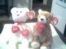 i love you bear white with to red hearts danglig that says i love you and always brown with holding a beautiful red rose i sell only to the united states.truly in white with red hearts date of birth 11-2-2004.always brown bear with d/of/b 02-14-04 holding beautiful red rose both are minty conditions also tags to, only cashier checks money orders or cash with printout, great gifts for the loved one in your life.no refunds.as is sale i will sell all of these at once or seperately for a reasonable offer.pink is cure.garcia,fuzz,dazzler,kringle santa bear+mistletoe, also spongebob set trio ty beanies..i also have the b/k watches that came out dec.2004 1-5 spongebobsquarepants plankton squidward spongebobandfriends richard star.need to downsize due to illness.i have over 75 beanie bears would be willing to sell all for one great offer.
